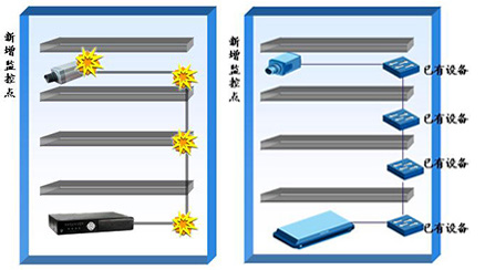 报警联动示意图 3)部署灵活 系统组网简便、灵活,任一监控点均可采用就近接入的方式接入网络,构成系统;在网络发达的今天,NVR充分利用IP网络资源,与传统的DVR系统相比,不再需要布设视频线、音频线、报警线、控制线等诸多线路,综合布线的成本自然降低; 4)安全性高 NVR采用嵌入式硬件和专用嵌入式软件,使用码流加密、用户认证和授权,安全可靠,无病毒侵扰。 5)双流技术 NVR和前端设备均支持双码流技术,根据应用场景自动适配,提供清晰流畅的图像效果。在网络环境比较差的情况下可以选择低码流的视频进行浏览,但是存储的码流都是保证高清的视频。